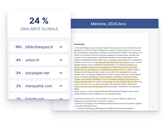 Comparez les dissertations, les mémoires de licence et de master remis par vos étudiants avec la plus grande base de données.